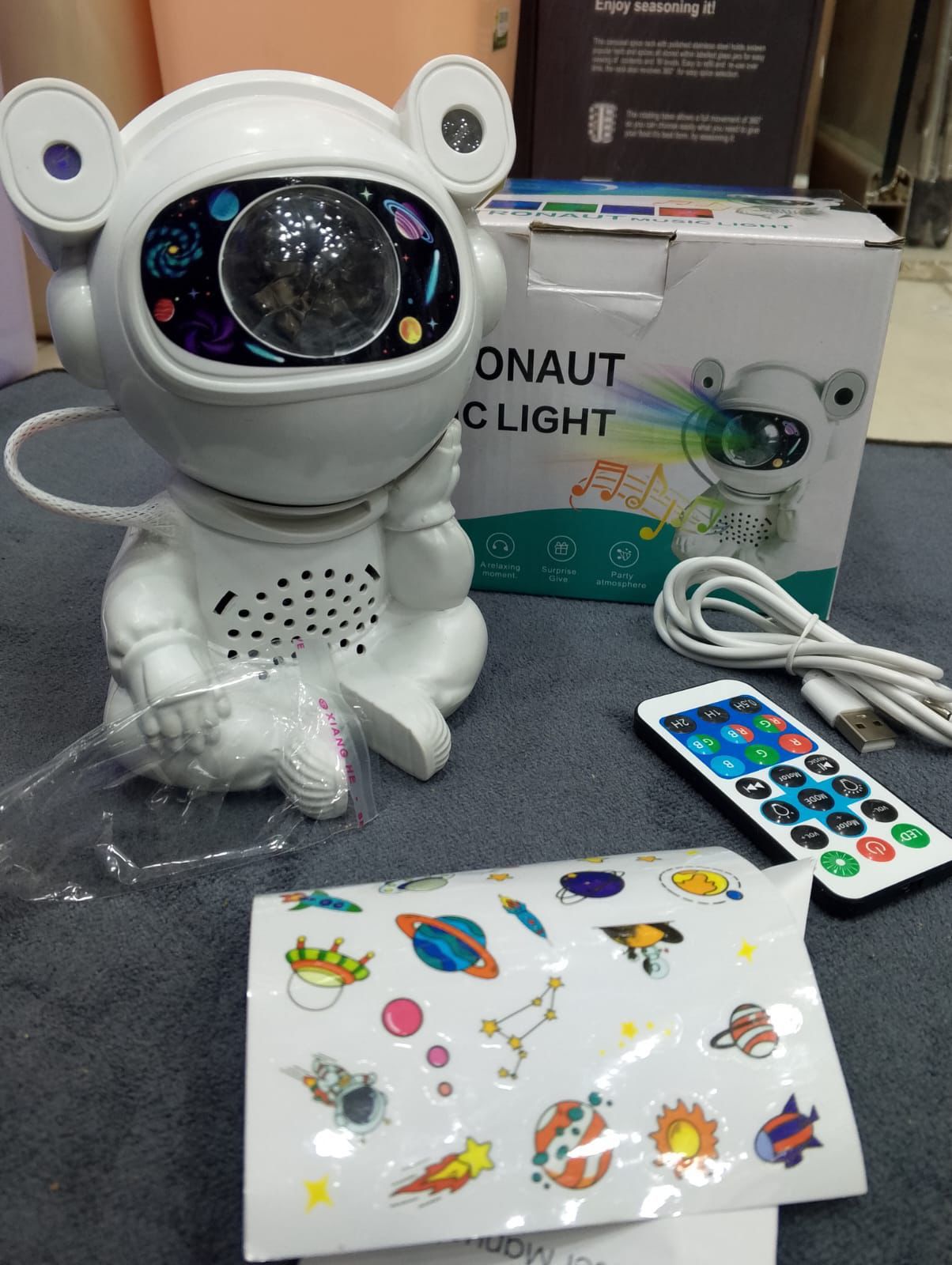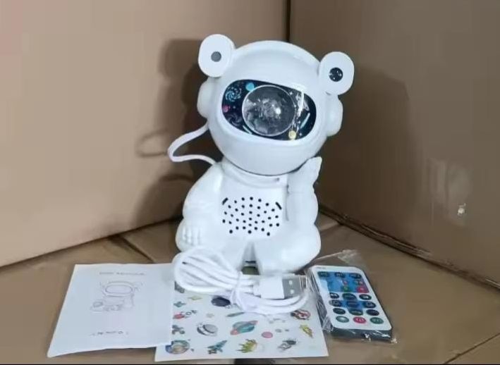 Transform your room into a cosmic wonderland with the Astronaut Galaxy Star Projector. This LED RGB lamp projects vibrant stars and galaxy patterns, creating a soothing and immersive atmosphere. Featuring a built-in Bluetooth speaker, it lets you enjoy your favorite music while relaxing under the stars. Perfect for bedrooms, lounges, or creative spaces, it combines soothing lighting with audio for a calming and inspiring environment. Easy to use and stylish, it supports restful nights and imaginative moments alike.